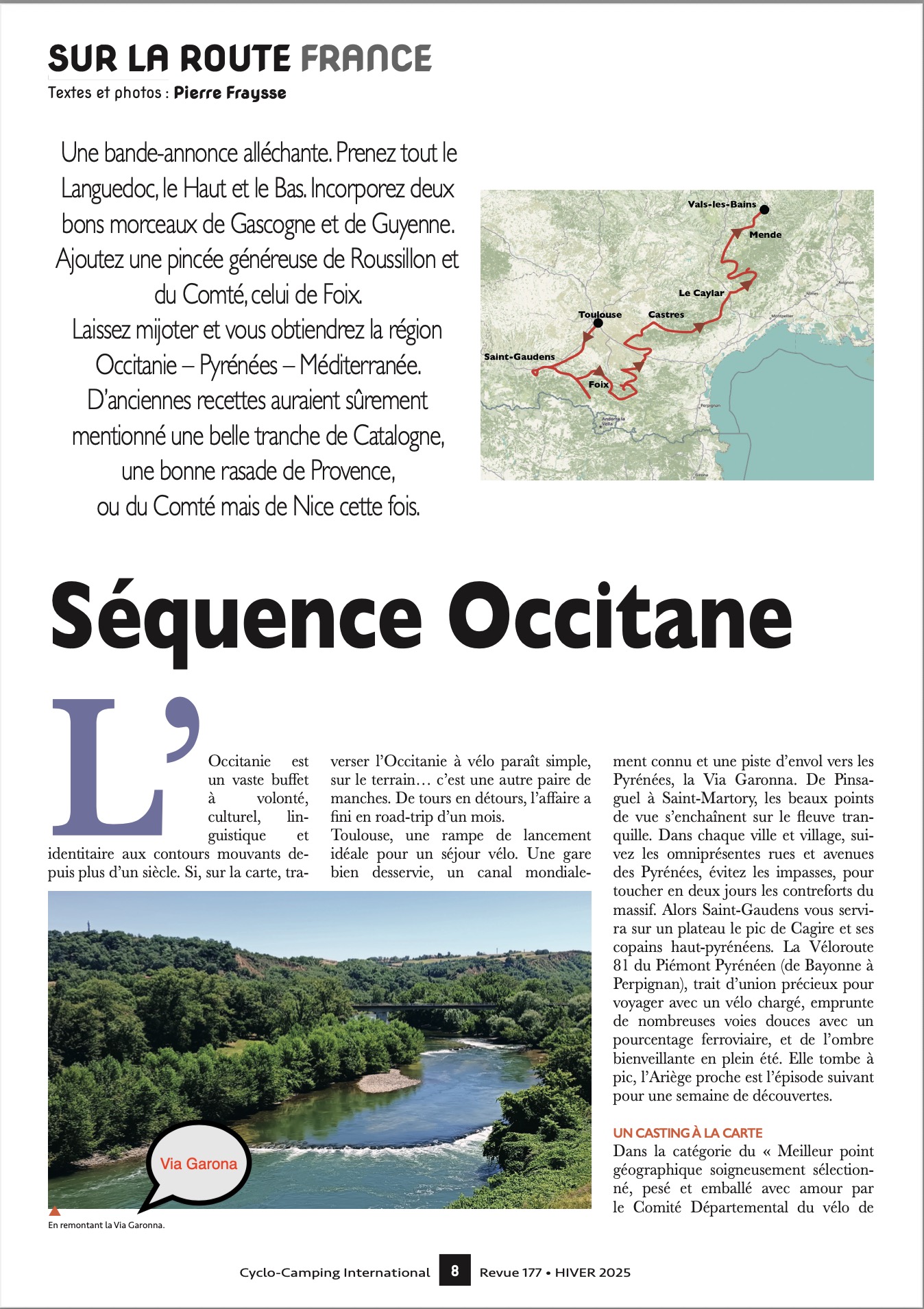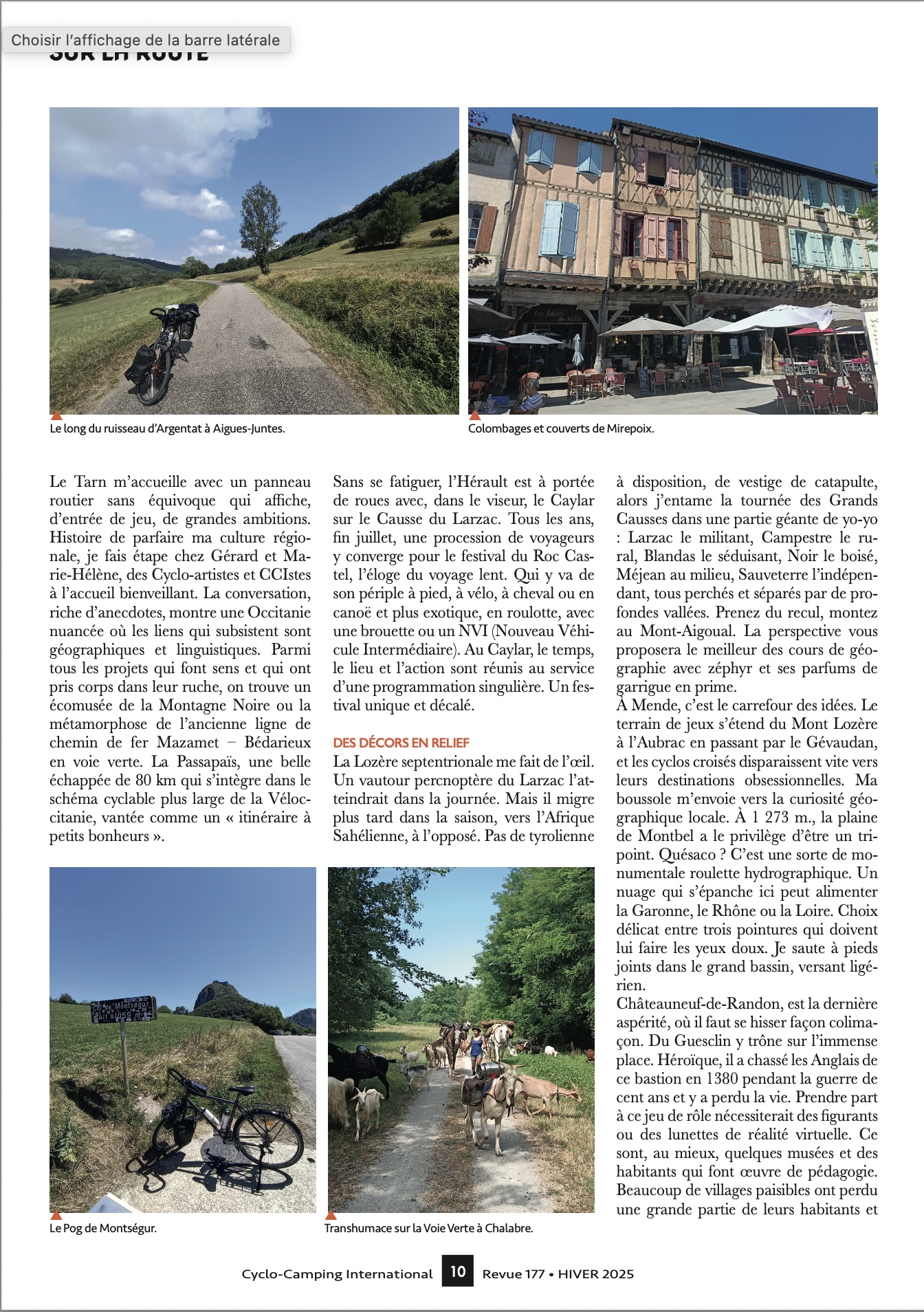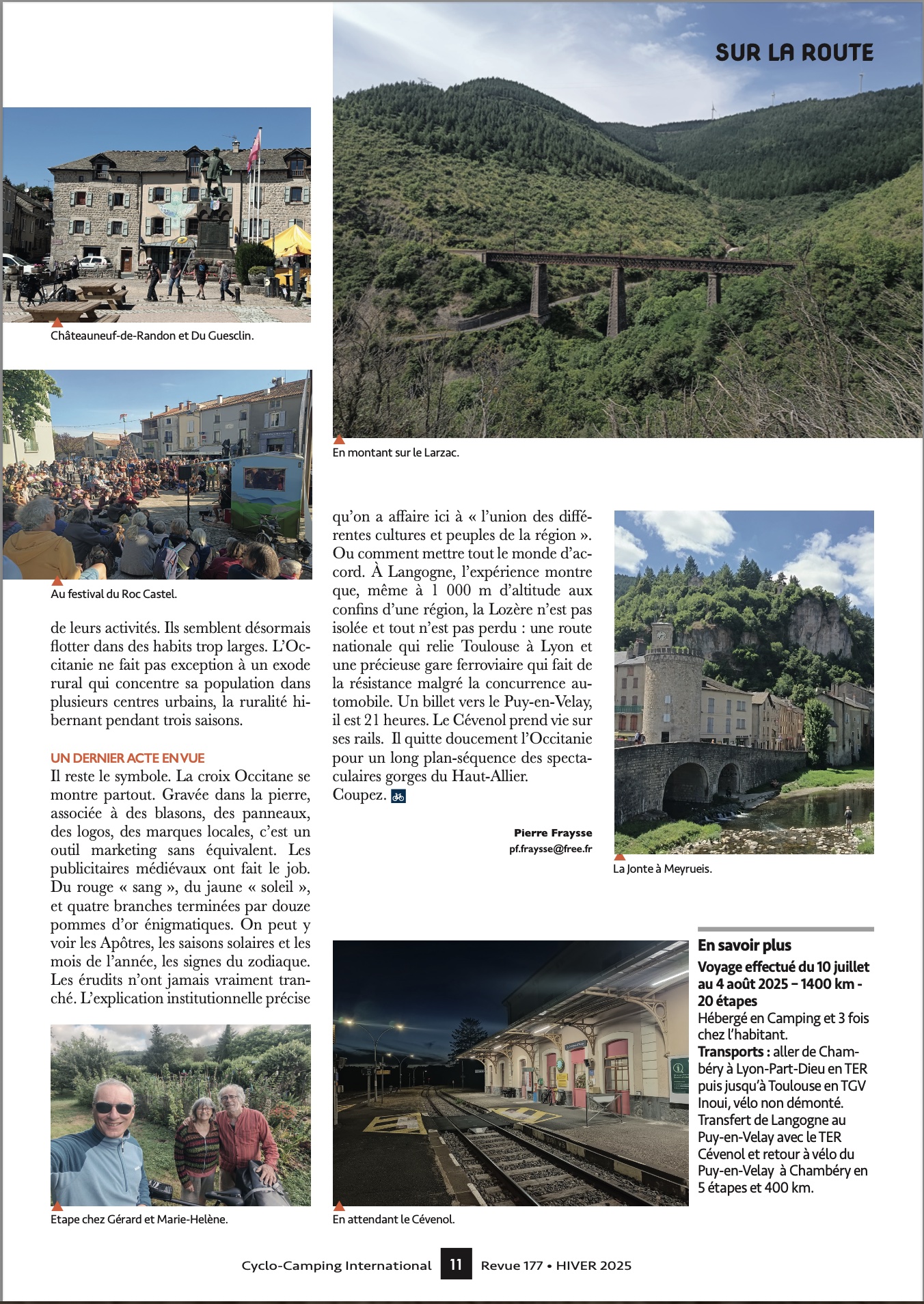 Voilà ce que c’est que la notoriété ! Un paparazzi à vélo (Pierre) passe à la maison et on se retrouve dans un article quatre pages paru dans le magazine du Cyclo-Camping international …