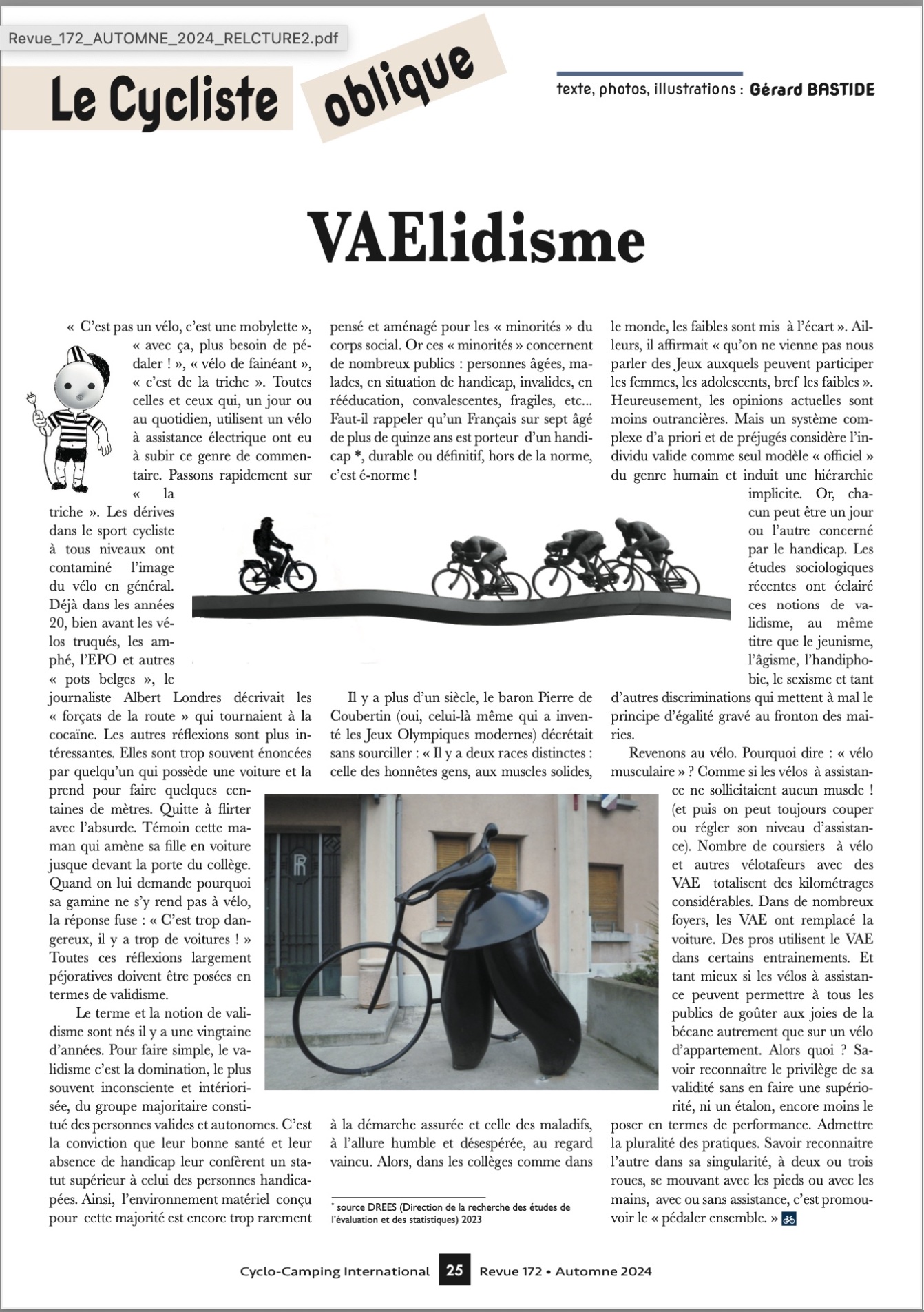 l'ecriveur polygraphe Vaelidisme 16 novembre 2024 Gérard Bastide Laisser un commentaire chronique parue dans la revue Cyclo-Camping International,, automne 2024